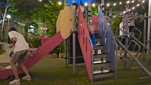 Анапа. Детская площадка Фламинго у Морского порта. Ежик в Анапе. Отдых с детьми в Анапе вечером.