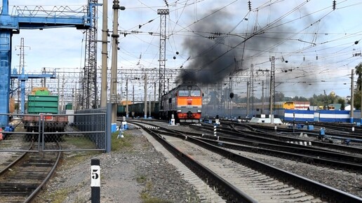 Тепловозы 2ТЭ116У-0069 и 2ТЭ10М-3335. Отправление двойной тяги с "медведями".
