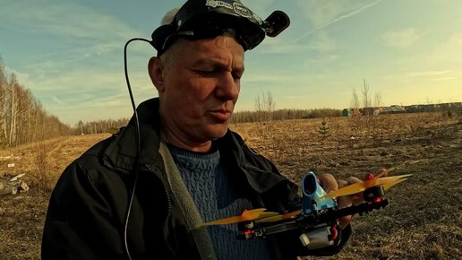 Проверка собранного квадрокоптера в поле.