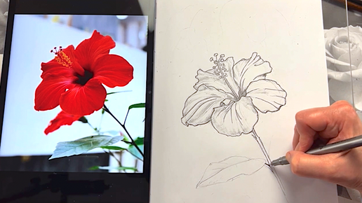 ГИБИСКУС, построение, часть 1. Как перевести рисунок на акварельную бумагу. Мастер-класс Лилии Бето