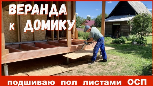 ВЕРАНДА к ДОМУ СВОИМИ РУКАМИ! Подшиваю пол, устанавливаю стойки каркаса. Видео из цикла "Как построить каркасный дом своими руками".часть 12