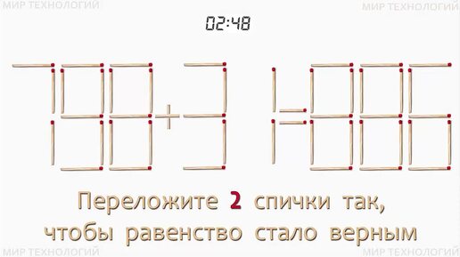 Задача со спичками 477. Переложите 2 спички так, чтобы равенство стало верным (798+31=886).