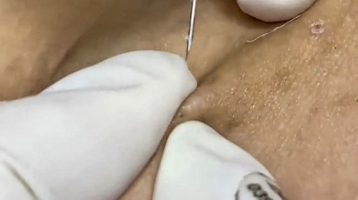 Очень много прыщей засело на лице девушки