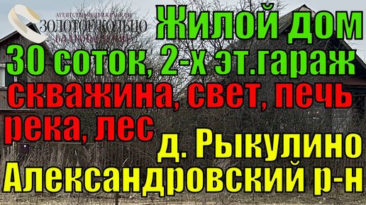 Продаётся жилой дом с бревенчатым гаражем на участке 30 соток в д.Рыкулино, Александровский район
