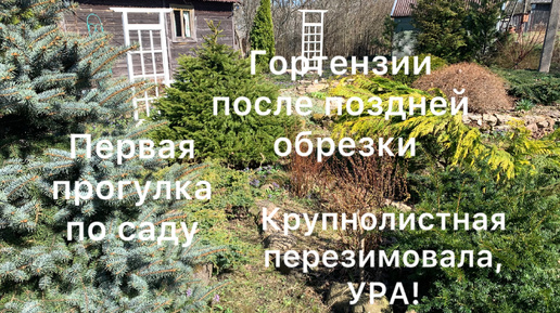 ПРОГУЛКА ПО САДУ. МЕТЕЛЬЧАТЫЕ ГОРТЕНЗИИ ПОСЛЕ ПОЗДНЕЙ ОБРЕЗКИ. КРУПНОЛИСТНАЯ отлично перезимовала, показываю укрытие