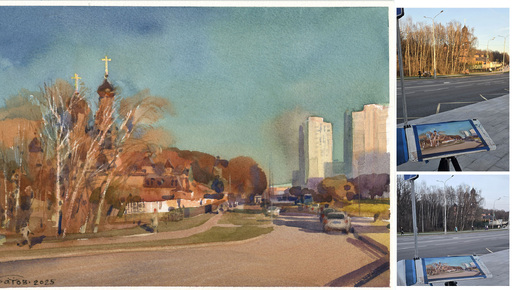 20250416 Тёплый стан. II. Москва. Натурный этюд, акварель