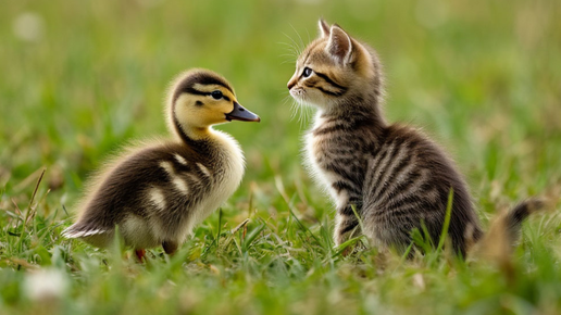 Утёнок, гроза мышей! Кто лучший мышелов, котёнок или утёнок?