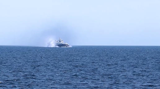 Корабли ОСК на службе: корабли на воздушной подушке провели артиллерийские стрельбы в море