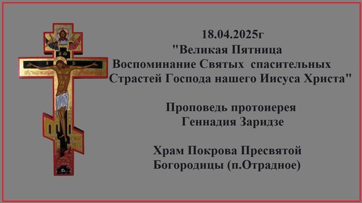 18.04.2025г "Великая Пятница. Воспоминание Святых спасительных Страстей Господа нашего Иисуса Христа.Проповедь протоиерея Геннадия Заридзе