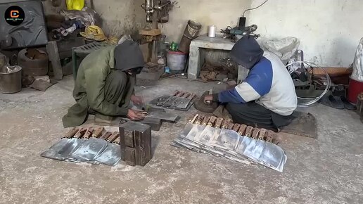 Процесс изготовления больших ножей.