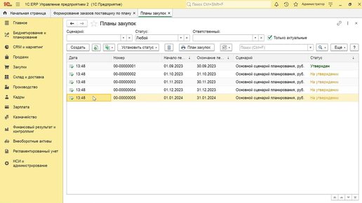 5.7. Создание заказов поставщику по плану, заказ материалов в кладовую, передача материалов в кладовую