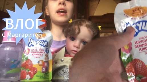 ВЛОГ с реборном Маргоритой. Проснулись, переоделись, заплелись и пошли кушать. На завтрак чай и ягодная агуша.