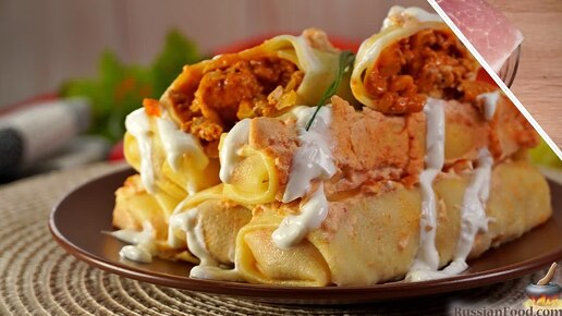 Нажористо и очень вкусно. Блинчики с мясной начинкой