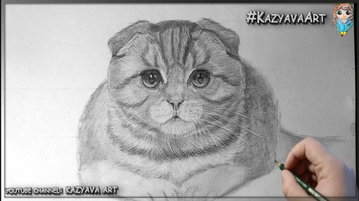 Как нарисовать Шотландскую вислоухую кошку карандашом. Мастер-класс. Часть 1