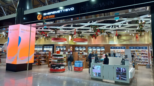 Цены на алкоголь и зона дегустации в Duty Free аэропорта Шереметьево.