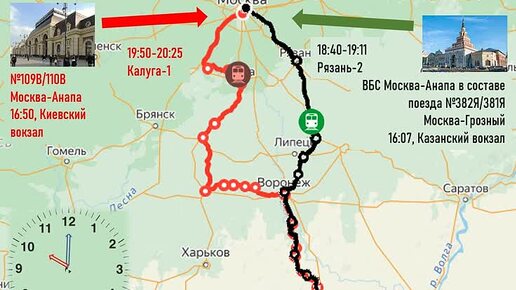Инфографика о том, как расходятся / сходятся поезда сообщением Москва-Анапа