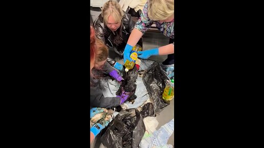 Перед Пасхой волонтеры спасли угодившего в ловушку с машинным маслом щенка Кулича