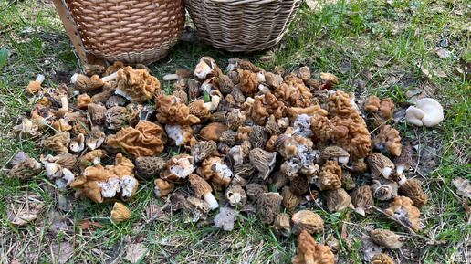 40 строчков и 130 сморчковых шапочек - итог 2х часовой прогулки. 19.04.25 Совместный выход со Старым Солдатом. Смоленская обл.