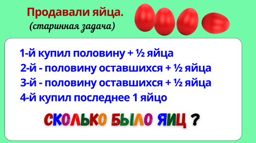 СТАРИННАЯ ЗАДАЧА ПРО ЯЙЦА!