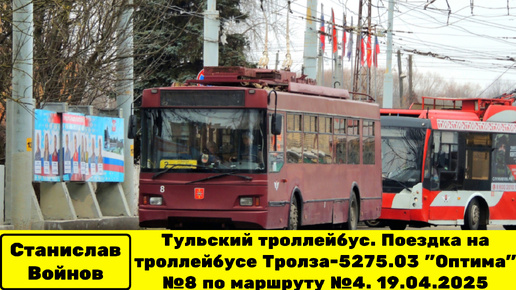 Тульский троллейбус. Поездка на троллейбусе Тролза-5275.03 "Оптима" №8 по маршруту №4. 19.04.2025