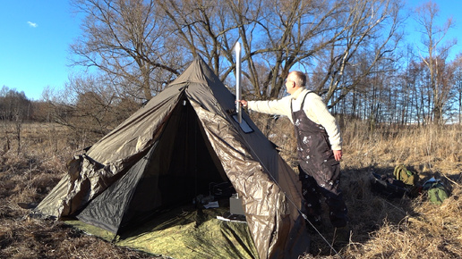 Поход с "горячей" палаткой и печкой. Готовлю стейк на печи. Впечатления