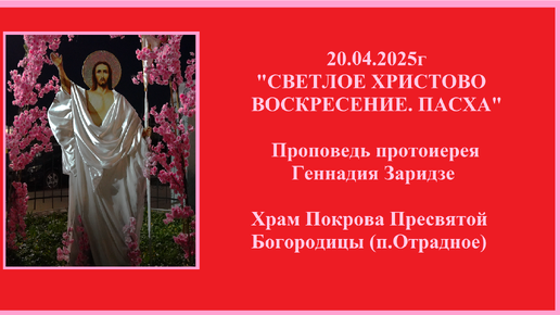 20.04.2025г "СВЕТЛОЕ ХРИСТОВО ВОСКРЕСЕНИЕ.ПАСХА" Проповедь протоиерея Геннадия Заридзе. Храм Покрова Пресвятой Богородицы (п.Отрадное)