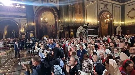 Пасхальное богослужение в храме Христа Спасителя: видео