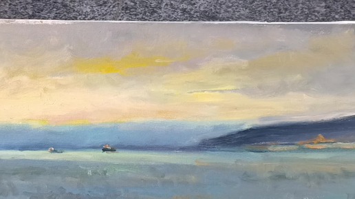 Вечер на морском побережье. Пленэр ZhNataly Вечер на морском побережье: волны слегка набегают, зажигаются огоньки города, напряженное небо