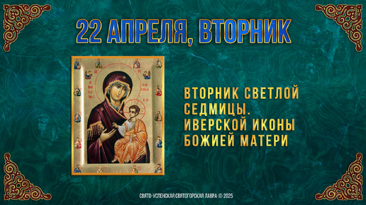 Вторник Светлой седмицы. Иверской иконы Божией Матери. 15 апреля 2025 г. Календарь