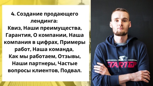 4. Создание продающего лендинга_ Квиз, Наши преимущества, Гарантия, О компании, Примеры работ и тд.