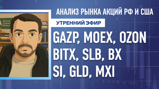 Анализ рынка акций РФ и США/ GAZP, MOEX, OZON, BITX, SLB, BX/ SI, GLD, MXI