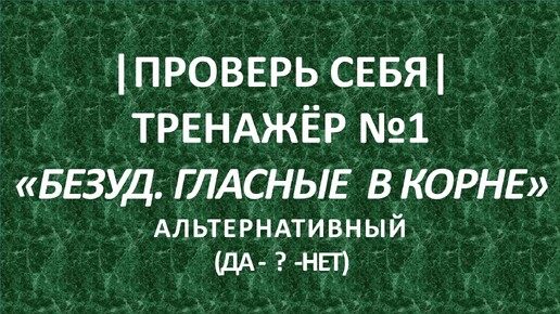 |ПРОВЕРЬ СЕБЯ| ТРЕНАЖЁР №1 «БЕЗУД. ГЛАСНЫЕ В КОРНЕ» АЛЬТЕРНАТИВНЫЙ (ДА - ? -НЕТ)