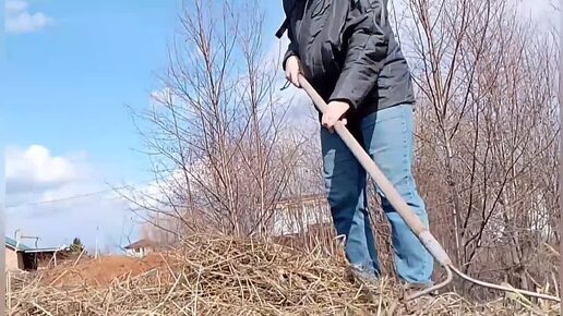 Уборка сухой травы на участке. Как выглядит участок после зимы