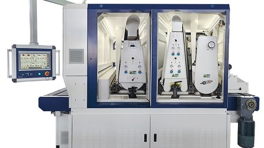 Калибровально шлифовальный станок с электронным секционным сегментным утюжком работает в составе окрасочной линии. Высокий глянец