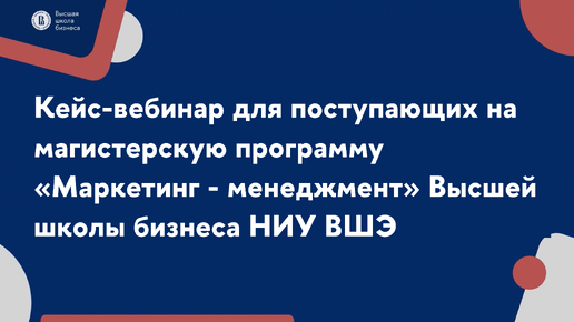Кейс-вебинар для поступающих на магистерскую программу «Маркетинг - менеджмент» | Магистратура | НИУ ВШЭ | 17.04.2025