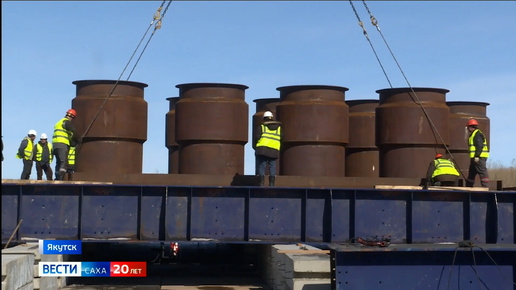 Подготовка к спуску на воду. Строители Ленского моста приступили к сборке конструкций коффердамов на левом берегу реки