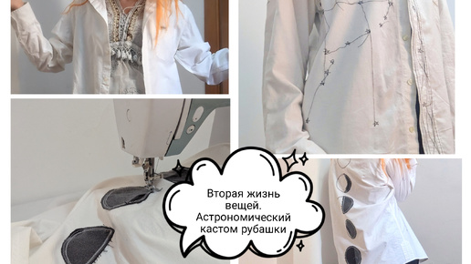 Вторая жизнь вещей. Как переделать мужскую рубашку в космический арт: фазы луны, вышивка и джинсы