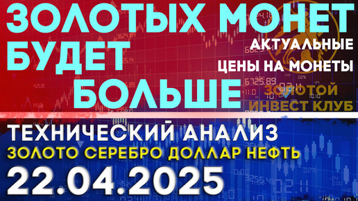 ЦБ России нарастит выпуск золотых монет. Анализ рынка золота, серебра, нефти, доллара 22.04.2025