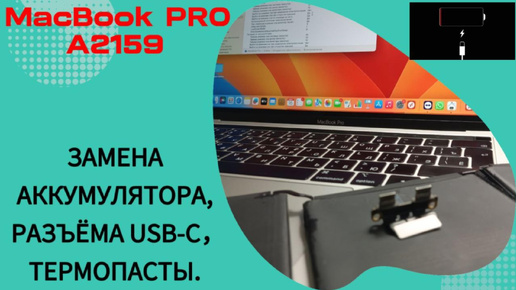 MacBook PRO A2159 замена батареи, разъёма USB-C и термопасты.