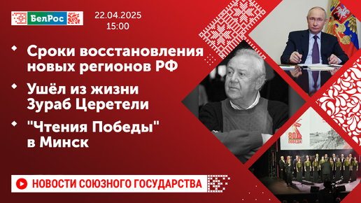 Сроки восстановления новых регионов РФ / Ушёл из жизни Зураб Церетели / "Чтения Победы" в Минск