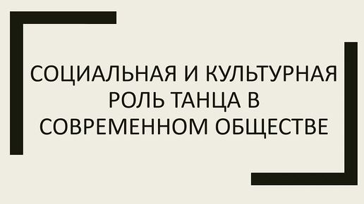 Социальная и культурная роль танца в современном обществе
