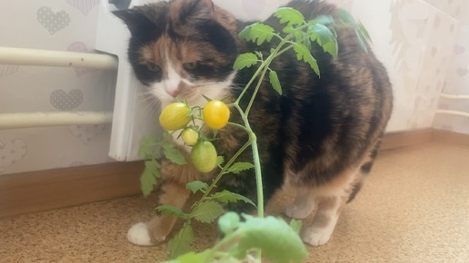 Фрося уронила горшочек с помидорами и деоает вид, что она не при чем!