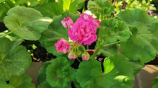 Стандартная зональная пеларгония Лара Гармония Густо махровые цветы