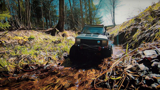 RC Cinematic Trophy Forest River Jeep Cherokee XJ Hobbywing Fusion SE system.