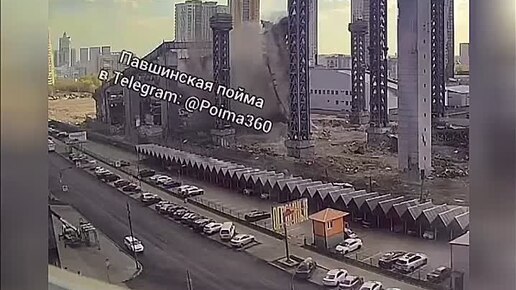 Обломки бетона повредили стекла машин и зданий во время демонтажа горнолыжного комплекса «Снежком» и очередного обрушения конструкции