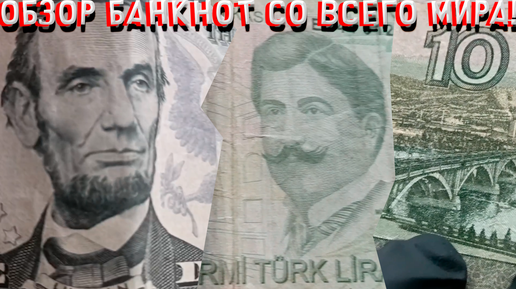 ОБЗОР БАНКНОТ СО ВСЕГО МИРА (5 ДОЛЛАРОВ, 20 ЛИР, 10 РУБЛЕЙ)