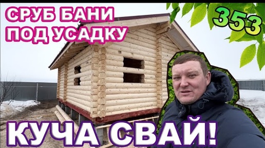 Сруб бани под усадку / Баня на куче свай!