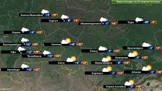 Прогноз погоды на 24-25 апреля 2025 г.