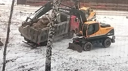 Там происходит что то интересное. Когда застрял гружёный самосвал самосвал и как его вытаскивали!