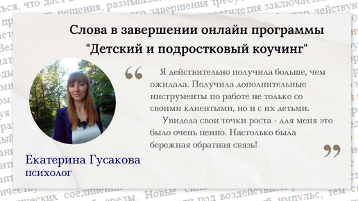 Отзыв Екатерины Гусаковой